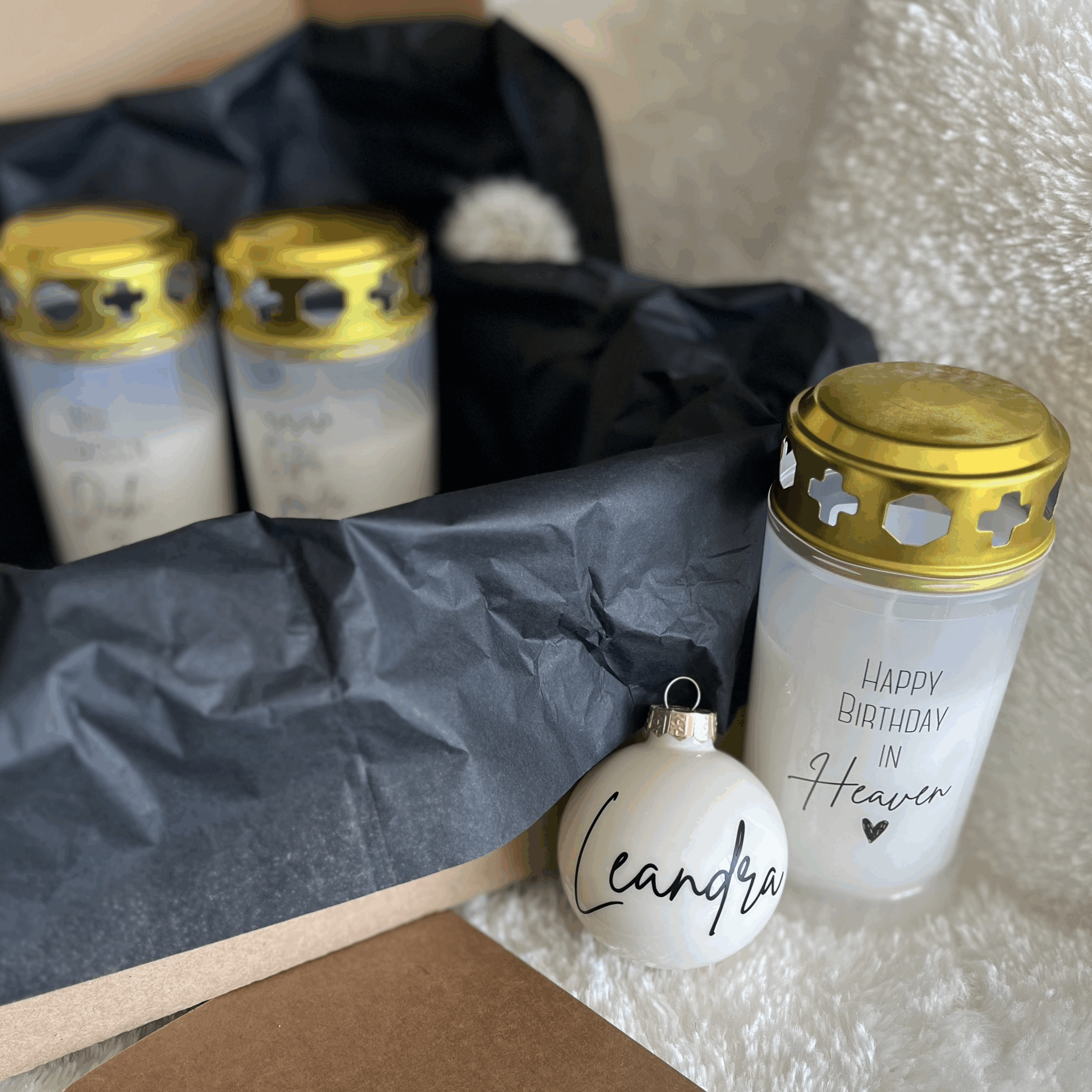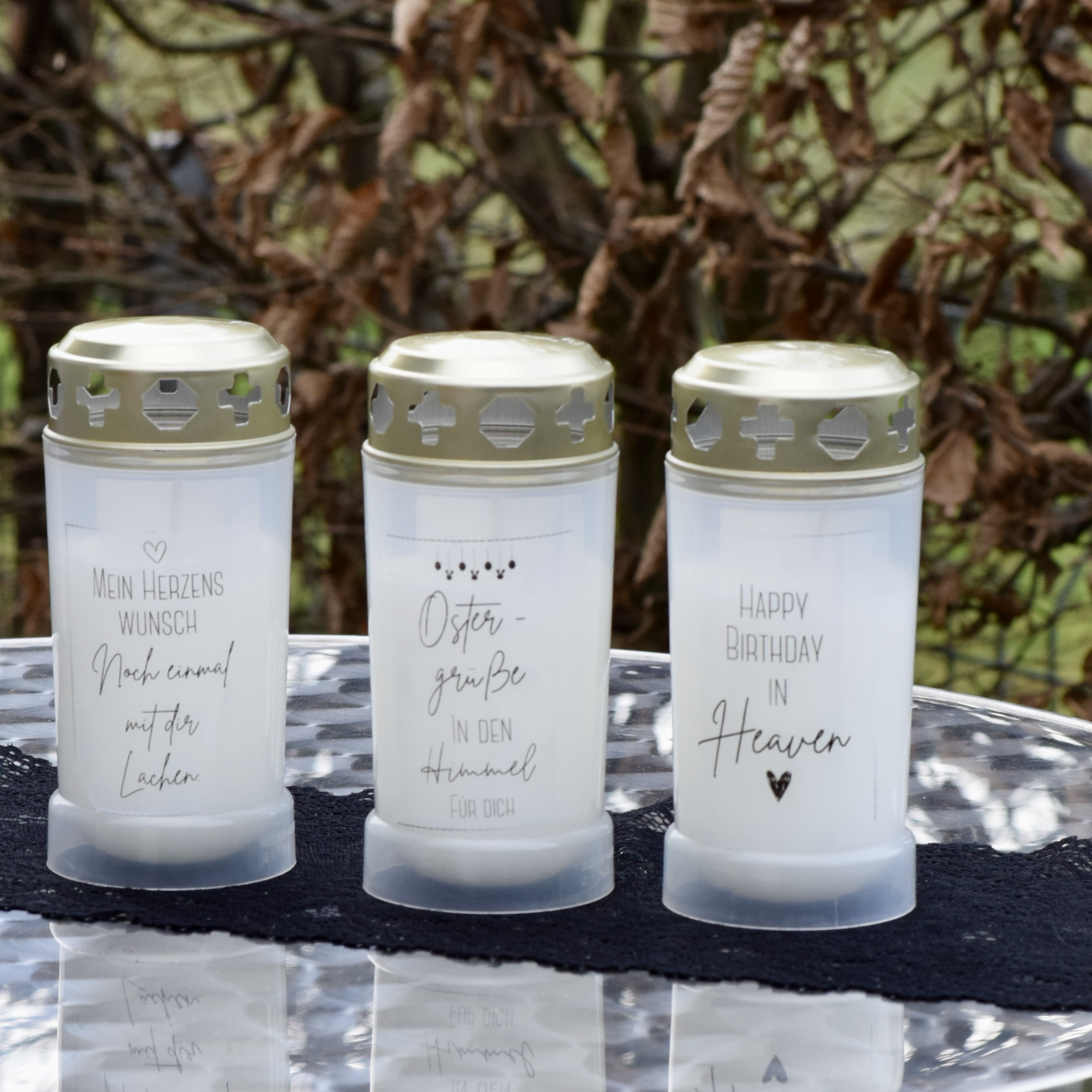 Individuell gestaltete Grabkerzen für besondere Gedenktage